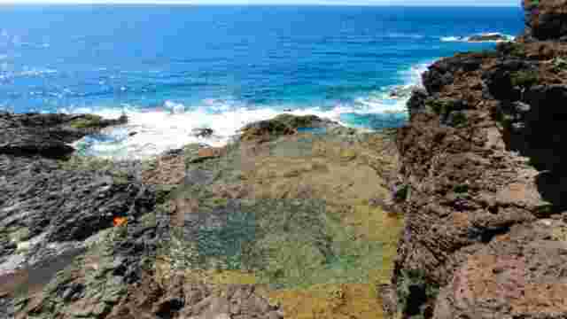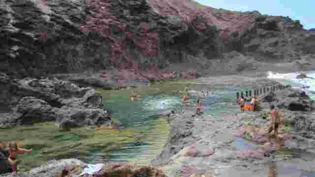 A small natural pool located in the north of Gáldar in a cliffside setting.